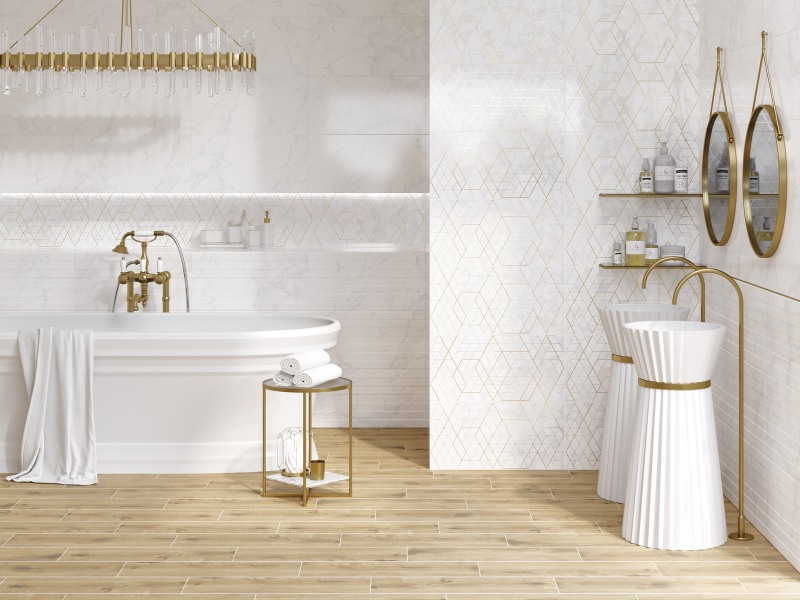 15925 Декор Calacatta Белый шеврон